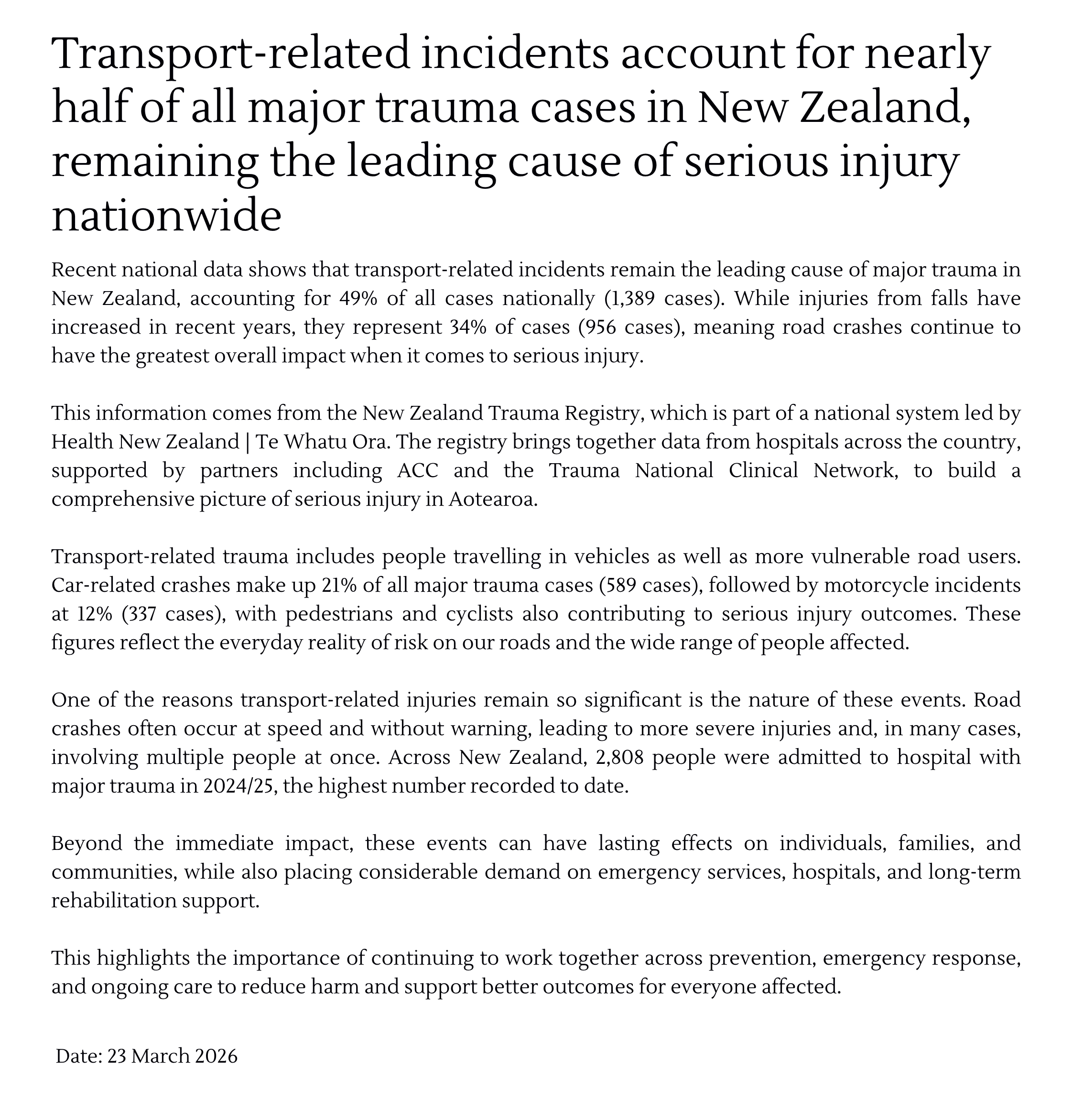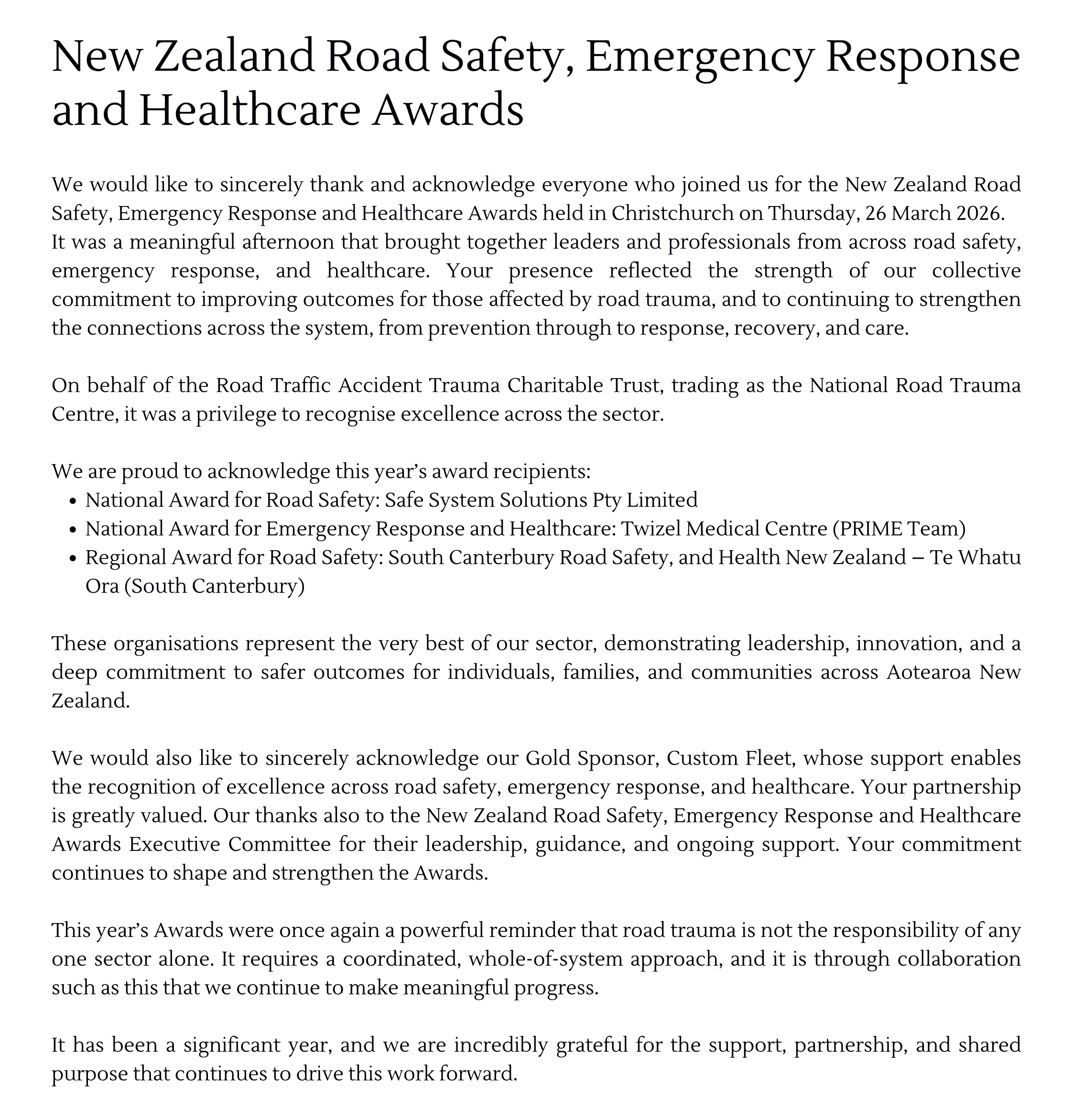 NEW ZEALAND ROAD SAFETY, EMERGENCY RESPONSE & HEALTHCARE AWARDS
